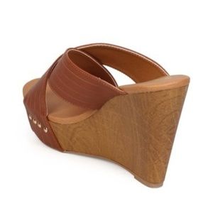 2/$20 Qupid Leatherette Criss Cross Slip On Wedge Sandal
