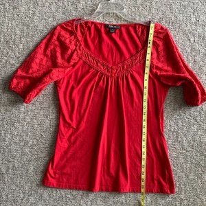 2/$20 Red Shirt with Eyelet Sleeves and Neckline - Size Medium