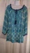 Ruby Rd. sz 1X, blue/white pattern pom pom trim tie neckline pattern tunic top. In very good used condition! No flaws! 53" around chest, 28.5" in length. Wear over jeans or pants. 100% rayon. Hand wash cold. Line dry. $15 or 2/$20 (2 select items for $20) + discount ship!