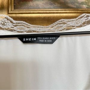 Super cute tie front top from Shein. Features lace-like trim and a silky satin like fabric, cropped fit and v-neck design. Princess Polly dupe. I’m also selling this is black! Both new without tags.
