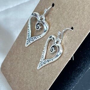 2/$20 Silver Tone Heart Hook Earrings Swirl Decorations Heart in Center NWOT