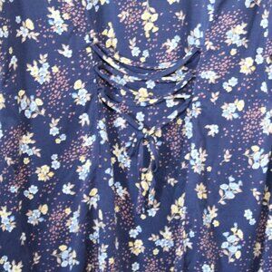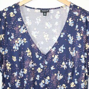 ✨2/$20 Torrid Navy Floral Stretch Challis Corset Back Top 00 Medium Large H12553