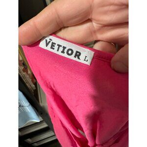 This Vetior crop top features a flattering V-neck and wrap design, crafted from soft modal fabric. Its vibrant hot pink color adds a bold statement to any wardrobe.