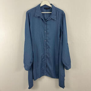 2/$20 Zac & Rachel Blue Button Up Blouse Tunic With Roll Sleeves Women's Size 2X