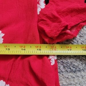 beautiful bright red v neck short sleeve top with allover flowers