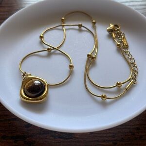 ❤️ 2/$20 or 3/$25 Tiger Eye Pendant Gold Stainless Steel Elegant Necklace
