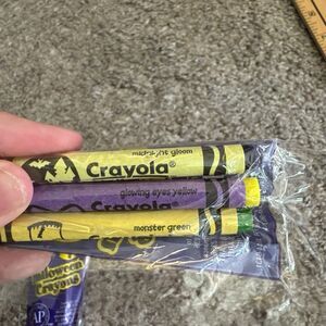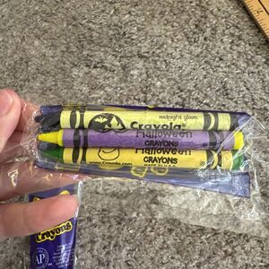 This comes with 2 packs of 3!!! The product is a rare Crayola Halloween 3-pack of crayons in discontinued colors. The pack includes multicolor crayons perfect for kids' crafts and drawing. Made in the United States, the set is sealed and features various Halloween-themed designs. This collectible item is ideal for those looking to add unique and vibrant colors to their art projects.
