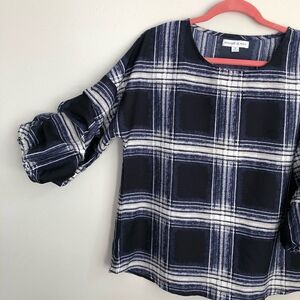 2/$20 Maggie & Max Blue Plaid Puff Sleeve Top