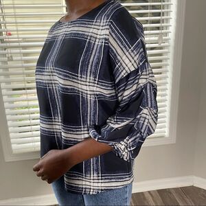 Maggie & Max Blue Plaid Voluminous Sleeve Top