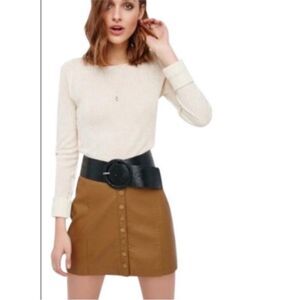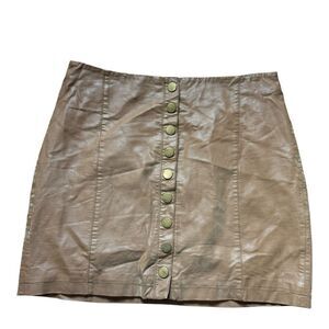 2/$20 Revolve Free People Oh Snap Faux Leather Brown Button Front Mini Skirt