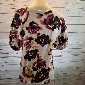 Delightful floral modified puffed sleeved top in cotton modal blend with a little stretch for comfort. Easy fit, like new.