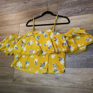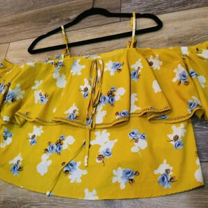 J.O.A yellow floral off the shoulder crop top. Size Large. Great condition no flaws. Stylish and chic top for spring and summer. Im a high rated fastshipper.