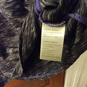 Barely worn running tank in heather black. Has back pocket for stashing an ID/key, reflective tape in stripes on front and tabs on pocket. 90% polyester, 10% spandex. Measurements (not stretched): 15" pit to pit, 19" waist, 26" shoulder to hem.