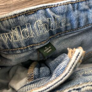 These high rise wild fable denim shorts are true to size with no stretch, offer a distressed & crochet look to bottom of front legs, zip with button closure, and are shortie shorts ✨🌼