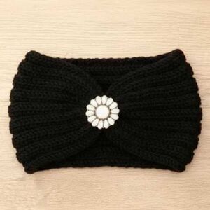 Type: Thick Headband | Winter Hair Accessory | Knit Headband | Round Beaded Flower Decal |