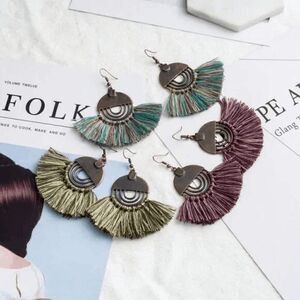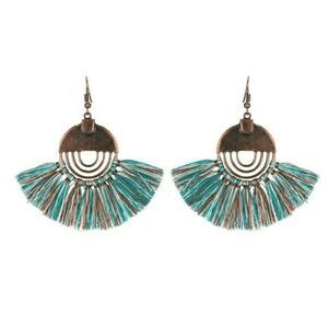 2/$21 Ladies Teal Aztec Dangle Tassel Earrings