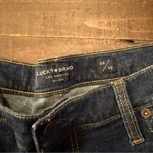 Experience timeless style with these Lucky Brand blue straight jeans. Crafted from durable denim, they offer a classic fit and a deep blue hue that complements any wardrobe. Perfect for everyday wear, these jeans provide both comfort and a sleek, traditional look. Gently worn