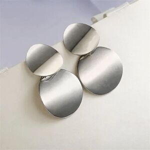 2/$21 Silver Double Circle Ladies Dangle Earrings