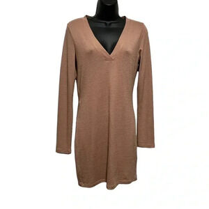 ARTIZIA WILFRED FREE Dress Bodycon Mini V-neck Stretchy Tan Knit Womens Small