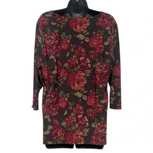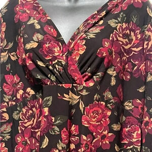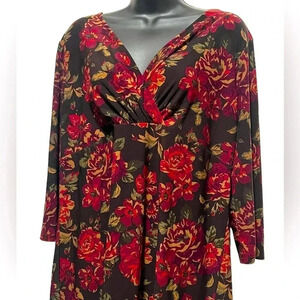 🍀2/$22 Chaps V Neck Surplice 3/4 Sleeves Brown Red Floral Blouse Womens size 1X