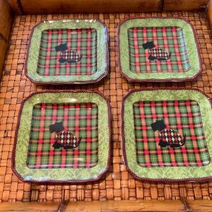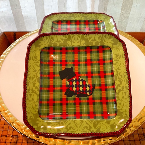 222 FIFTH Christmas Scotty Scottish Terrier Dog Argyle Appetizer Plates