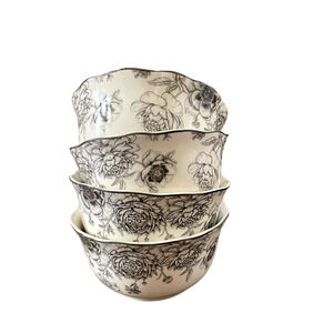 222 FIFTH Fine Porcelain Dashney Floral Salad Bowls 6in Gray White Set of 4 NEW