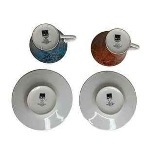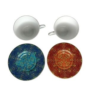 222 FIFTH Set of 2 Eva Opulent Blue & Red Porcelaine Fine China Cup & Saucer Set
