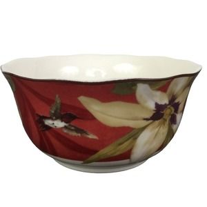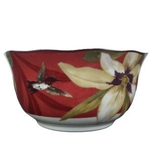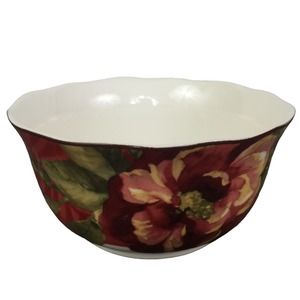 222 Fifth Belize Red Floral Fine Porcelain Dessert Soup Cereal Bowl Replacement