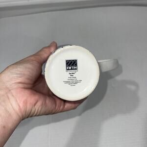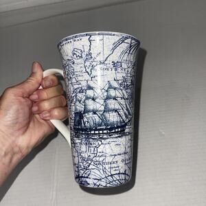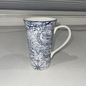 222 Fifth Due North Latte Coffee Mug Nautical Coastal Blue Tall Fine China