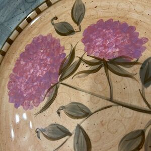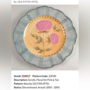 222 Fifth Ibaza Dinner Plate 11 1/2 Inch Round Scalloped Floral Blue Brown Pink