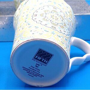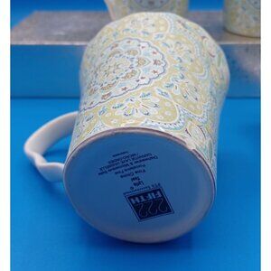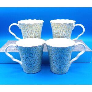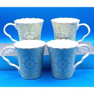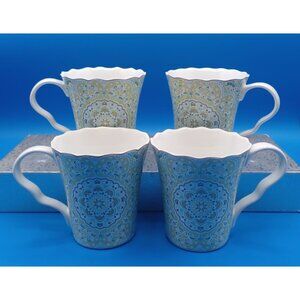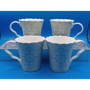 222 Fifth Lyria Teal Paisley Medallion Coffee Mugs Set Of 4 Porcelain Scalloped