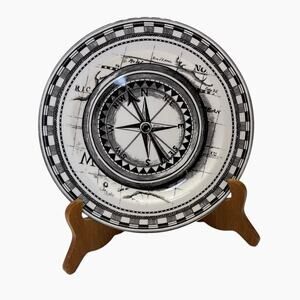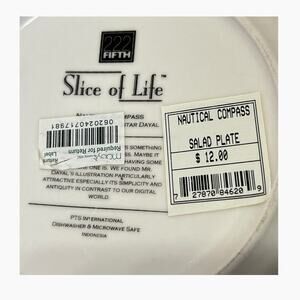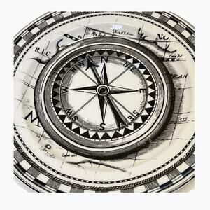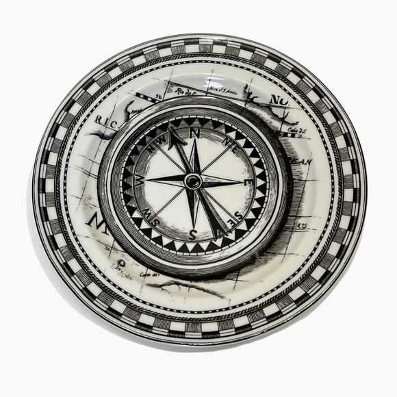 222 Fifth Slice Of Life Nautical Compass Salad Plate Decorative Black White