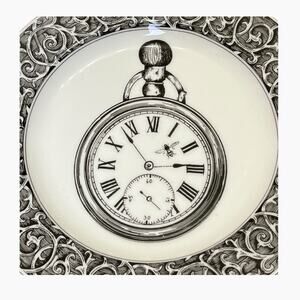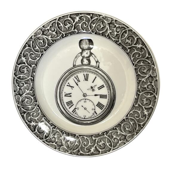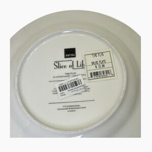 222 Fifth Slice Of Life Time Flys Salad Plate Decorative Black White Artsy 8.25"