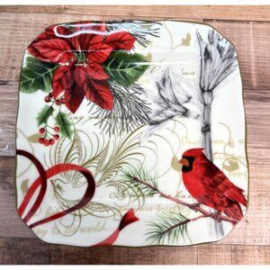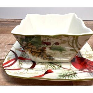222 Fifth Winter Harmony Square Plate & Bowl Set Christmas Design Porcelain