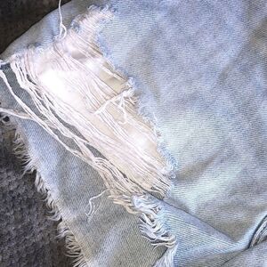 Stylish light blue distressed denim shorts perfect for casual outings. Enjoy comfort and fashion with these trendy shorts.