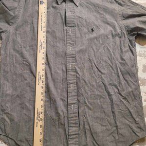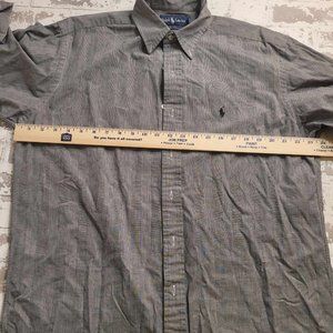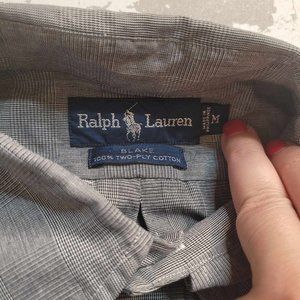 Elevate your wardrobe with this sophisticated button-up shirt from Ralph Lauren. The black micro plaid design adds a touch of timeless style to your outfit, while the button-down collar and closure create a polished finish. This shirt is made for men in a medium size and features long sleeves, making it perfect for any occasion. Whether you're dressing up or keeping it casual, this shirt is a must-have addition to your collection.
