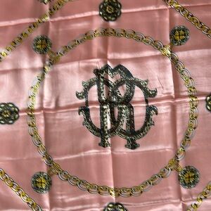 Add a bold and luxurious touch to your outfit with this stunning women’s square scarf. Featuring a pink base with intricate black leopard and gold chain print detailing, this piece is perfect for elevating any casual or dressy ensemble. Crafted from 100% polyester, it has a silky finish and a lightweight feel—ideal for all-season wear. New with tags and ready to style around your neck, handbag, or hair.