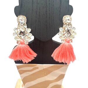 2/$24 Crystal & Coral Pink Tassel Drop Earrings Statement Jewelry