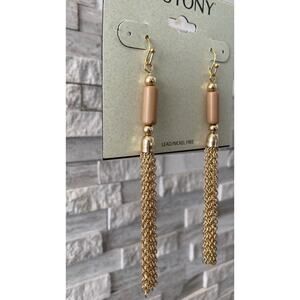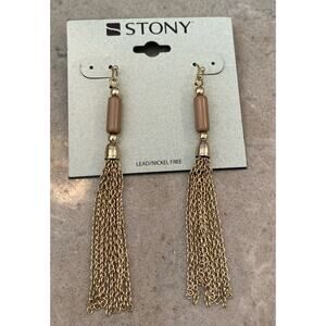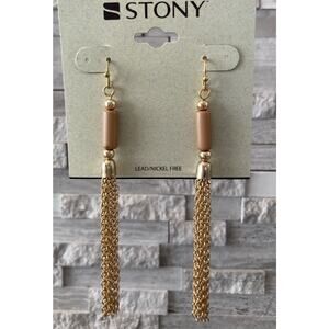 NWT earrings by Stony. These are gold with a very light brown accent, dangle and very light weight. Offers and questions welcome! Part of my 2/$24 promo.