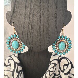 2/$24 Glamourous Vintage Turquoise & Gold Boho Statement Earrings