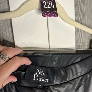 224. NEW Nina Parker Black Faux Leather Pants 2X