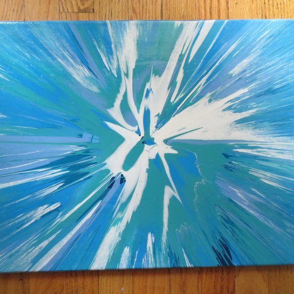 spin art Acrylic on canvas All the sides are painted, you don't need a frame. Each painting is sealed. There is a back hanger, you can place it which ever way you want the painting hung.