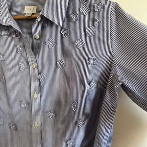 2/$25 A New Day Womens Button-Up Shirt L Blue White PinStripe Flower Long Sleeve