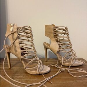 2/$25 Anne Michelle - Beige Strappy Knotted Lace-Up Stiletto Heels