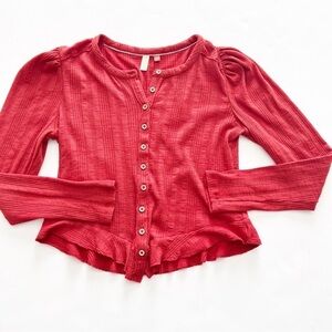 2/25 Anthropologie Pilcro Puff-Sleeved Cardigan Short Top Petite Henley buttons