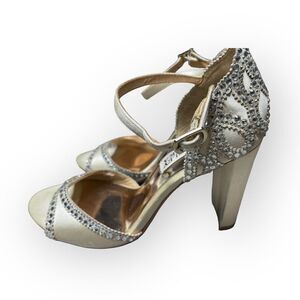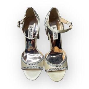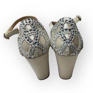 $225 Badgley Mischka Womens Ivory Crystal Embellished Block Heel Shoe Size US 5