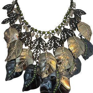 2/$25 Bicolor Leaf Statement Necklace With Multicolored Rhinestones