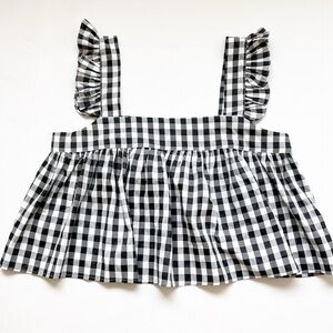 2/25 Buddy Love KYLE RUFFLE SWING TANK TOP - BLACK CHECKER Print Boho Crop
