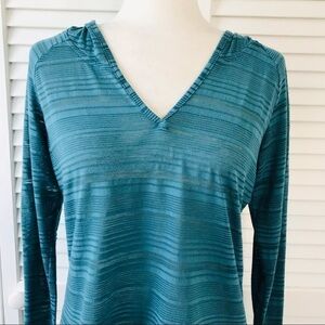 2/$25 COLUMBIA Teal V-Neck Semi Sheer Lightweight Hoodie Size Medium