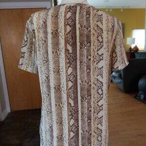 $225 Equipment snakeskin print 100% silk short sleeve shirt top XS beige/brown